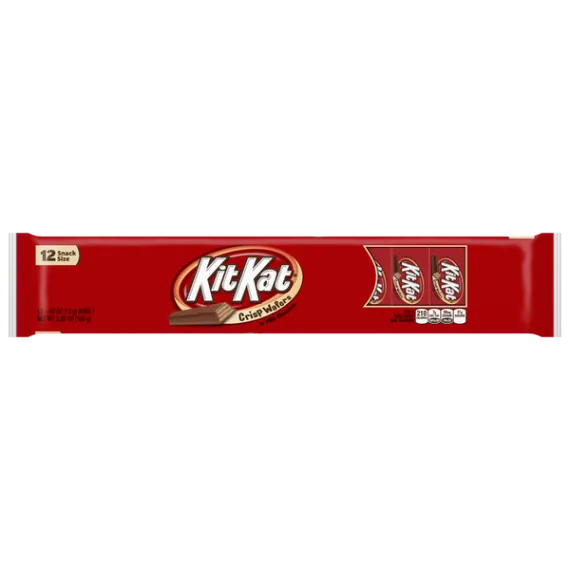 Details Ingredients Sugar; Wheat Flour; Nonfat Milk; Cocoa Butter; Chocolate; Palm Kernel Oil; Lactose (Milk); Milk Fat; Contains 2% Or Less of: Soy Lecithin; Pgpr, Emulsifier; Yeast; Vanillin, Artificial Flavor; Salt; Sodium Bicarbonate. Contains Milk, Wheat, Soy. Manufactured In A Facility That Also Processes Peanuts. Show more Product features KIT KAT® Wafer Bars are the chocolate bar with snap in every delicious bite. With this 12-count supply of snack size bars, you have break time, snack time, and good times wherever you go! KIT KAT® Snack Size Wafer Bars, 12 Count, 5.88 Ounces:Perfect for everyday snacking and sharingLayers of crisp wafers covered in milk chocolateDelicious on their own or as edible party décor and favorsKosher candy bars Net Quantity of Content 4 X 42 G