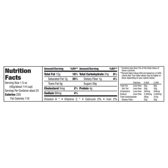* Percent Daily Values are based on a 2,000 calorie diet. Your daily values may be higher or lower depending on your calorie needs.
