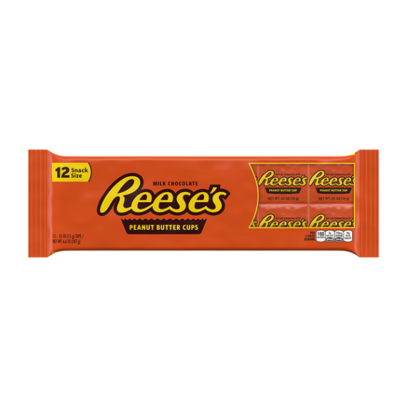 Details Ingredients Milk Chocolate (Sugar; Cocoa Butter; Chocolate; Nonfat Milk;Milk Fat; Lactose; Soy Lecithin; Pgpr, Emulsifier); Peanuts; Sugar; Dextrose; Salt; Tbhq (Preservative). Show more Product features Snack with an American classic! The perfect combination of chocolate and peanut butter, REESE'S Peanut Butter Cups are the perfect companion for movies, sports, and parties. REESE'S Snack Size Peanut Butter Cups, 12 Count, 6.6 Ouncess:Perfect for everyday snacking, stocking office break rooms, and handing out on HalloweenThe perfect combination of peanut butter and chocolateTwelve individually wrapped cupsA gluten-free and kosher candy Net Quantity of Content 12 X 0.55 Oz