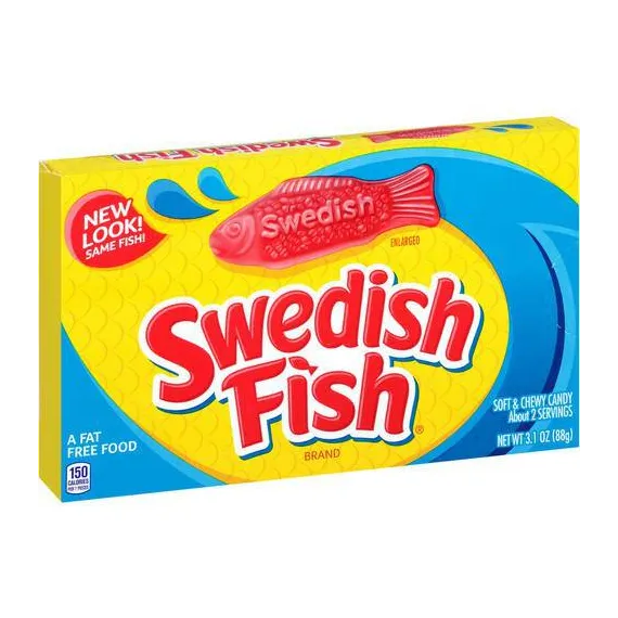 Details Ingredients Sugar, Invert Sugar, Corn Syrup, Modified Corn Starch, Contains Less Than 2% Of Citric Acid, White Mineral Oil, Natural And Artificial Flavor, Red 40, Carnauba Wax. Show more Product features SWEDISH FISH Soft & Chewy Candy are fun, soft, and chewy fish-shaped candy with an unforgettable fruity flavor, making them perfect for gatherings, parties, gifts, or sharing with friends. SWEDISH FISH are the #1 Fish Shaped Candy in the World.SWEDISH FISH are a fat-free candy, which means this is a sweet treat that you can feel good about enjoying.SWEDISH FISH are a red, chewy, and delicious gummy candy that's perfect for the whole family.They taste like fruit, not like fish. Get some now and share the classic movie theater-style box with friends.This includes one 3.1oz box of Swedish Fish Red Soft & Chewy Candy.Highlights:The #1 Fish Shaped candy in the worldRed with a delicious fruity flavorSoft, chewy, and fat-free candyMovie theater-style boxPerfect for sharing with friends.Our mission at Mondelez International is to create more moments of joy and build the best snacking company in the world by growing our people, growing our business and growing our impact on the world around us. Special Features Fat free Net Quantity of Content 3.0 X 5 pieces (30g)