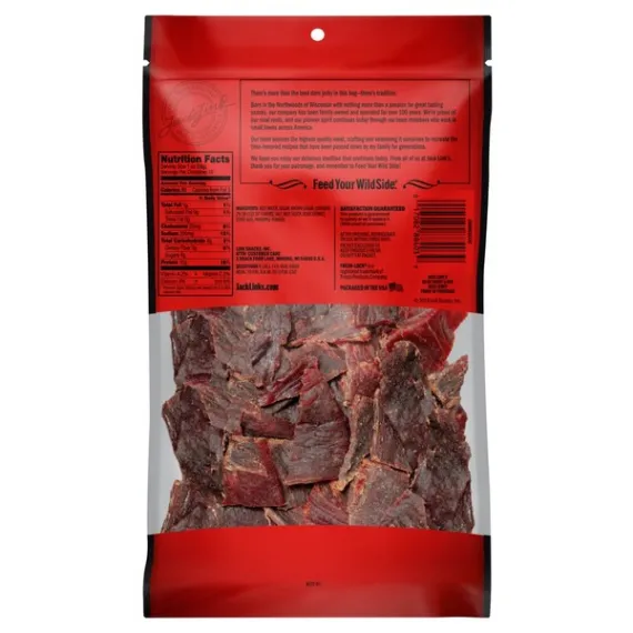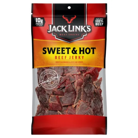 Details Ingredients Beef, Water, Sugar, Brown Sugar, Contains 2% Or Less Of Flavors, Salt, Beef Stock, Yeast Extract, Citric Acid, Pineapple Powder. Product features A sasquatch size bag of beef jerky large enough to share with friends or save for later. Jack Links Sweet & Hot Beef Jerky is the perfect blend of sweet and hot and YOU. Go ahead and give your gut a protein-packed punch when hunger strikes. Sweet & Hot Flavored Beef JerkyContains 1 bag of 10oz jerkyMeets USDA Smart Sck nutrition standards for schoolsHigh in protein, low in fat and carb smartClean label sck with no added MSG or perservatives Net Quantity of Content 1 Count Of 10oz Jerky X 1 oz (28 g)