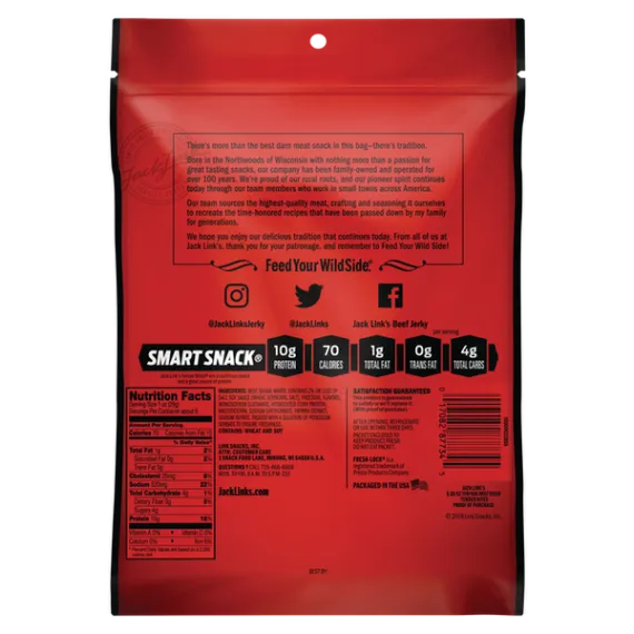 Details Ingredients Beef, Sugar, Water, Contains 2% Or Less Of Salt, Soy Sauce (Wheat, Soybeans, Salt), Fructose, Flavors, Monosodium Glutamate, Hydrolyzed Corn Protein, Maltodextrin, Sodium Erythorbate, Paprika Extract, Sodium Nitrite. Treated With A Solution Of Potassium Sorbate To Ensure Freshness. Show more Product features Jack Link's Beef Tender Bites are made from cuts of lean beef that are seasoned with a secret blend of spices and slow-cooked to deliver a tender, rich and hearty meat snack. Teriyaki Flavored Beef JerkyContains 1 bag of 5.85oz tender bitesMeets USDA Smart Snack nutrition standards for schoolsHigh in protein, low in fat and carb smartClean label snack with no added MSG or perservatives Special Features 96% fat free Net Quantity of Content 6 X 28 G