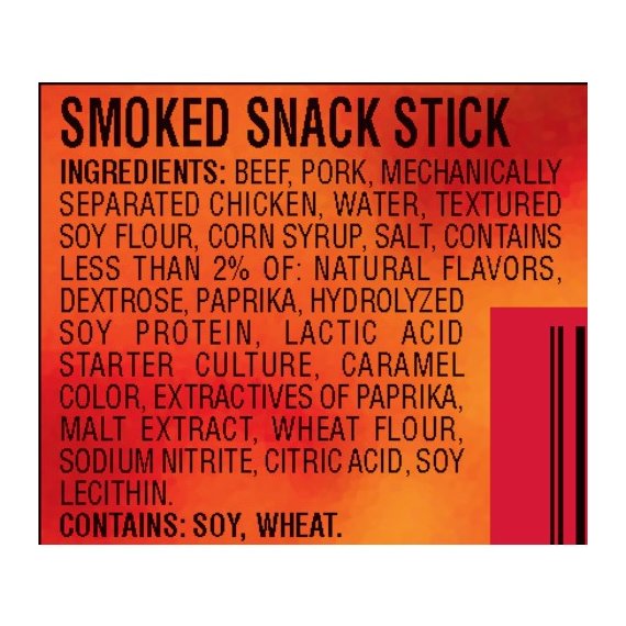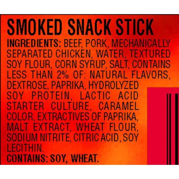 Details Ingredients Beef, Pork, Mechanically Separated Chicken, Water, Textured Soy Flour, Corn Syrup, Salt, Contains less than 2% of: Dextrose, Natural Flavors, Paprika and Extractives of Paprika, Maltodextrin, Hydrolyzed Soy Protein, Lactic Acid Starter Culture, Barley Malt Extract, Citric Acid, Soy Lecithin, Sodium Nitrite. CONTAINS: SOY. Show more Product features Slim Jim is America's #1 brand of meat stick. Individually wrapped Slim Jim Mild Flavored Smoked Snack Stick, perfect for snacking on the go. Each 4-meat-stick serving is loaded with 6 g protein and made with beef, pork, and chicken, because beefy appetites require an even beefier snack. Slim Jim offers a full line of beef sticks, snack sticks, and beef jerky. Get intense, smoky flavor with delicious Slim Jim Mild Flavored Smoked Snack Sticks. Individually wrapped meat stick for a quick and easy snackSlim Jim meat sticks use spicy beef, pork, and chicken, because beefy appetites require an even beefier snackIndividually wrapped snack sticks for an easy, on-the-go meat feast that'll kick hunger to the curbThe intensely bold Mild Flavor is prime for snack time, lunchtime, after school, or anytime-carry one on you in caseContains (26) .28 oz Slim Jim Mild Flavored Smoked Snack Sticks0 g trans fat per serving Net Quantity of Content 1.0 X 8g